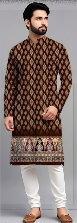 Cotton printed kurta pajama set dark mehron colour